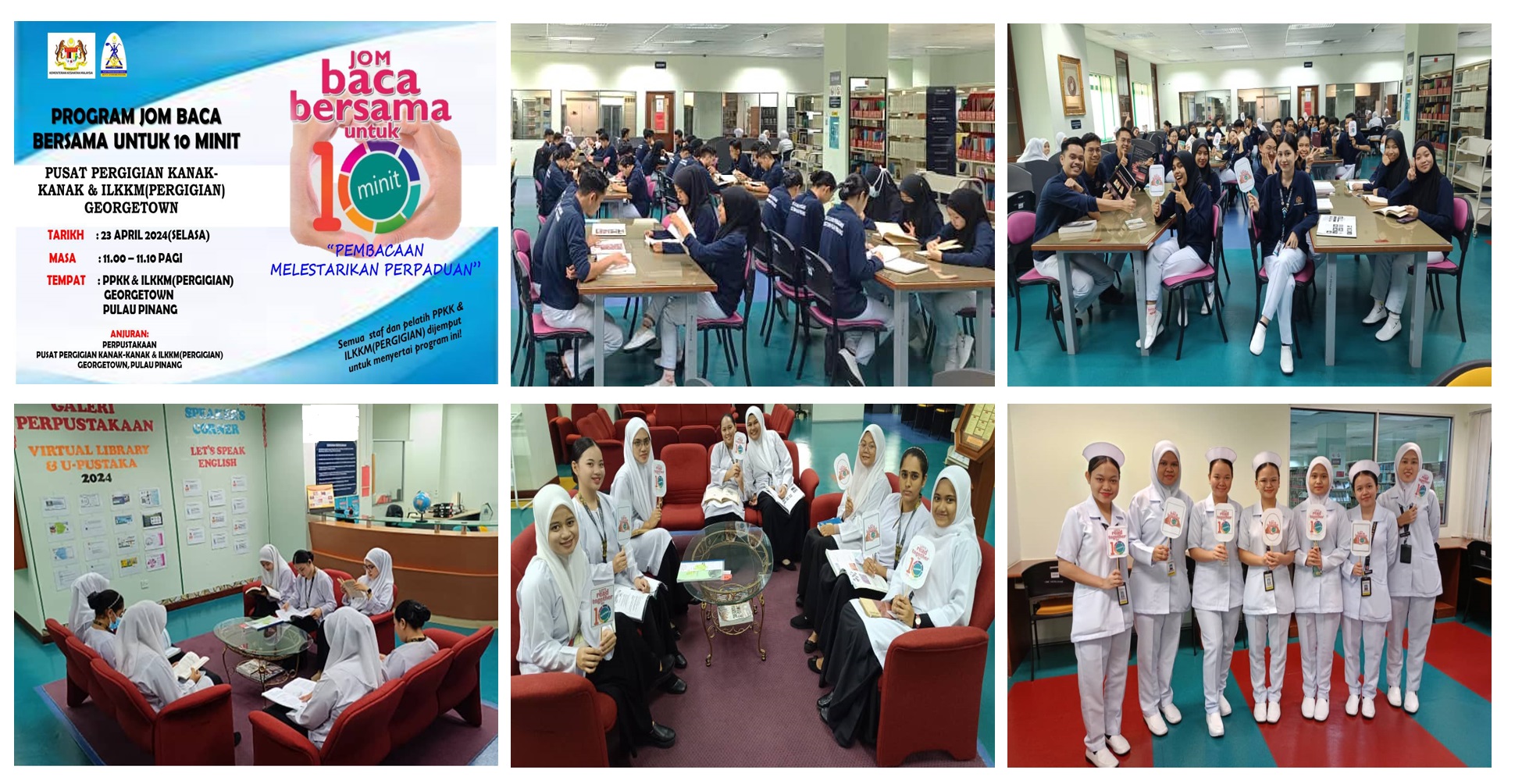 Program Jom Baca Bersama untuk 10 minit ini merupakan aktiviti tahunan yang dianjurkan oleh Unit Perpustakaan Pusat Pergigian Kanak-Kanak & Institut Latihan KKM(Pergigian) Georgetown, Pulau Pinang Sempena Sambutan Hari Buku dan Hak Cipta Sedunia. Program ini diadakan dengan tujuan untuk memupuk dan membudayakan amalan membaca dalam kalangan warga institusi.