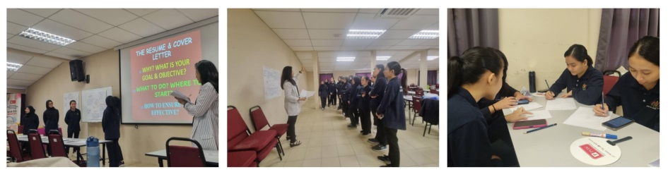 Pelatih yang terlibat dapat mempelajari cara-cara untuk menyediakan resume yang lengkap & cara-cara untuk menjawab soalan temuduga dengan baik. Diharapkan dengan pendedahan ini dapat meningkatkan lagi kemahiran dan keyakinan mereka semasa dalam perkhidmatan kelak.